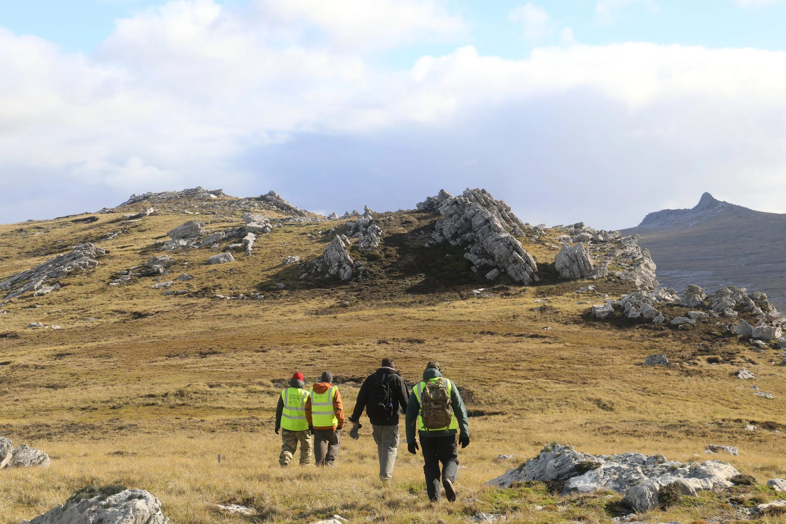 The Project’s first fieldwork in the Falkland Islands took place in March-April 2022. The team spent most of the season on Mount Tumbledown. In the field, we used foot and drone survey and then recorded finds and features through geo-location, photogrammetry, 3-d scanning, and drawing. All finds were left in situ.